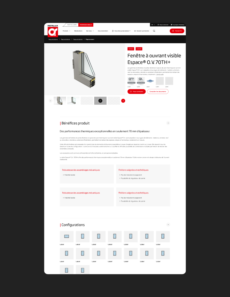• La séparation claire des univers renforce la lisibilité de l’offre et le positionnement d’Installux.