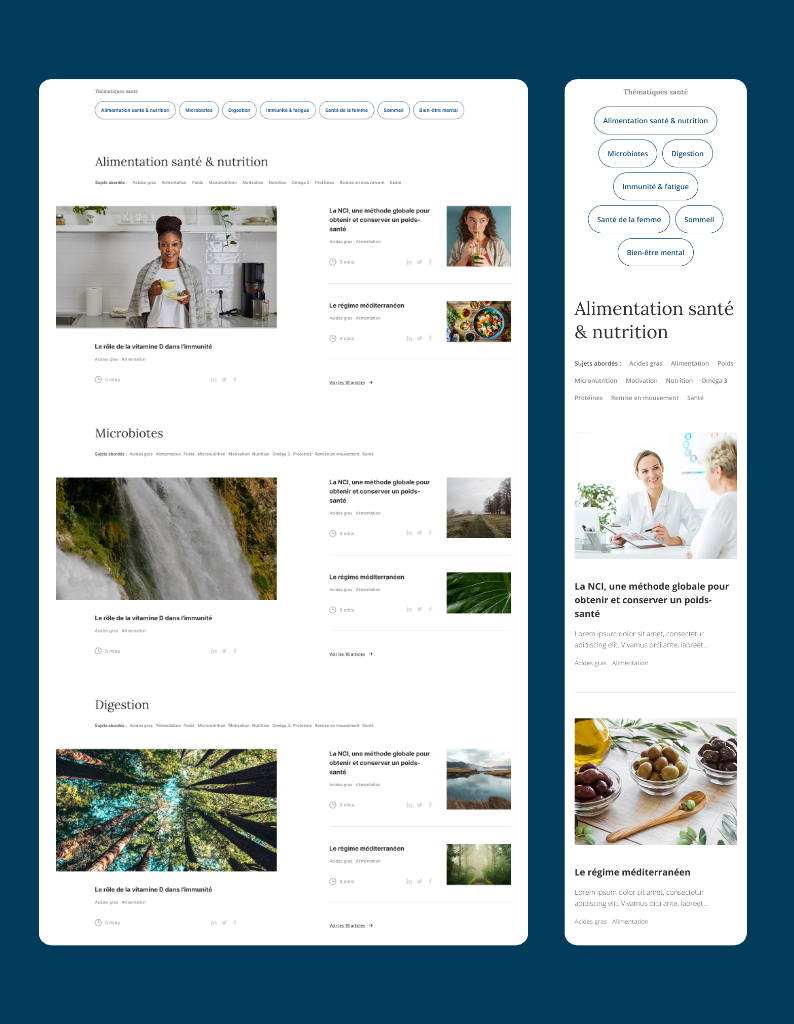 • Des parcours de lecture fluides et thématisés encouragent l’exploration des contenus et renforcent l’adhésion à la ligne éditoriale de la Revue Santé.