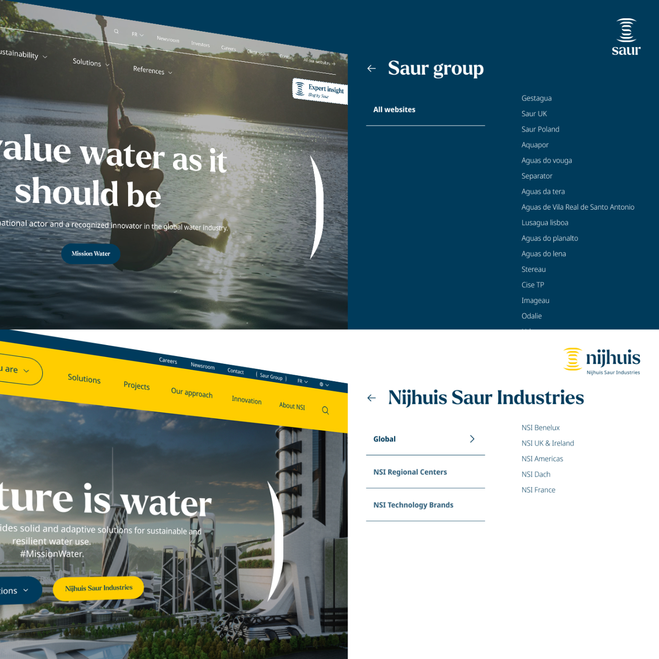 SAUR et Nijhuis Saur Industries appartiennent au même groupe et opèrent sur des périmètres complémentaires, avec des cibles, des discours et des niveaux de technicité différents.