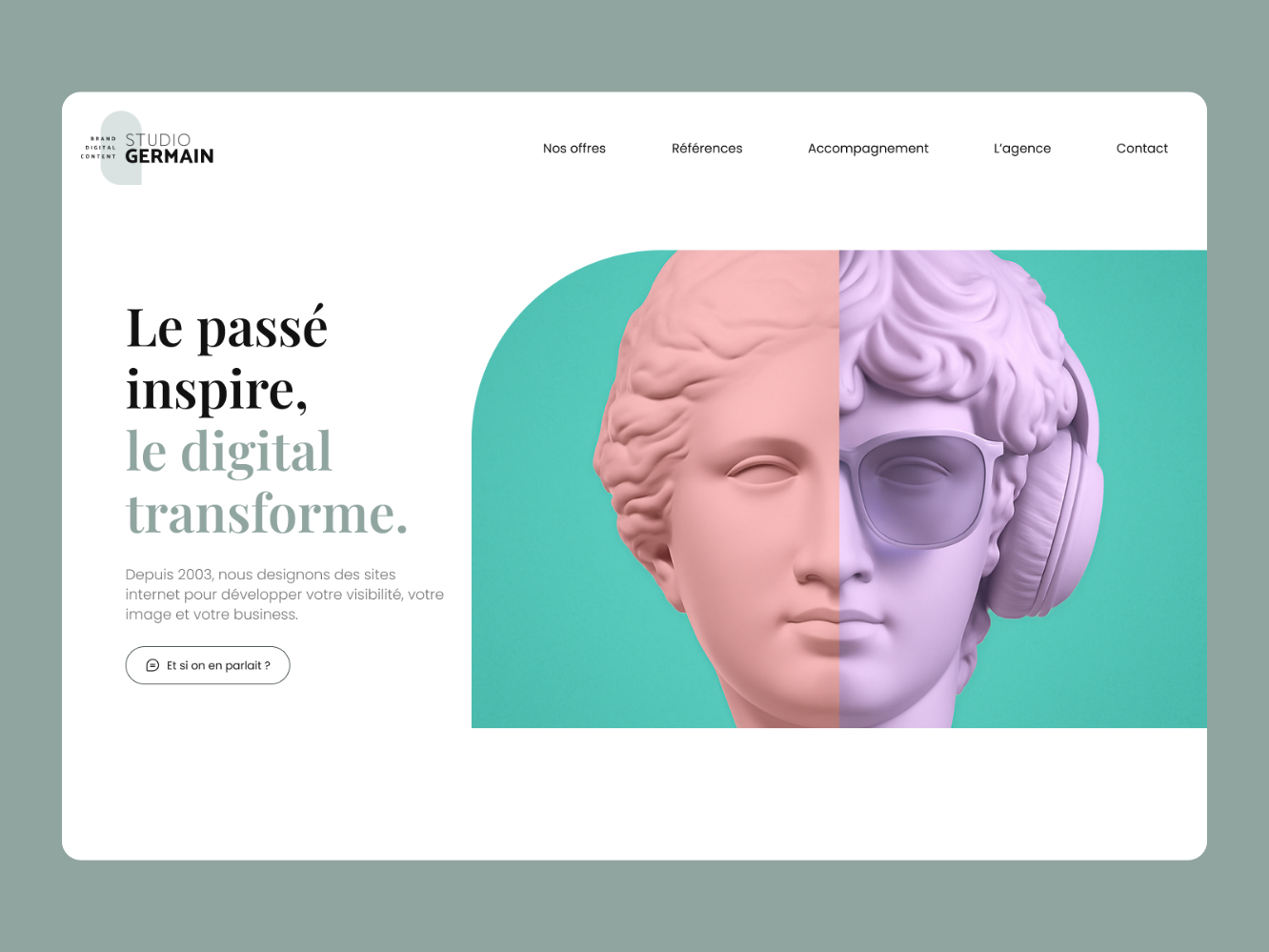 Pixyweb a évolué pour devenir Studio Germain. Ce changement de nom et d’identité visuelle n’était pas un simple rebranding : il visait à matérialiser une transformation déjà engagée, avec un métier qui s’affirme et une identité plus claire, plus assumée, plus fidèle à ce que l’agence est devenue.